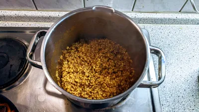 1.Bulgur trocken in einem Topf anrösten. 2.Sobald er angenehm duftet, mit Wasser ablöschen, und die Zutaten A dazugeben. 3.Aufkochen, und dann bei niedrigster Stufe abgedeckt köcheln lassen, bis die Flüssigkeit fast vollständig eingezogen bzw. verdampft ist. Anschließend den fertig Bulgur abkühlen lassen.